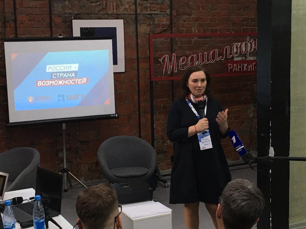 Татьяна Дьяконова. По ее словам, платформа «Россия – страна возможностей» объединяет не только различные проекты, но и создает возможности для внутреннего взаимодействия их участников. После конкурса «Лидеры России», победители и финалисты получили возможность не только «брать», но и «отдавать». Клуб «Эльбрус» уделяет большое внимание проекту «Наставничество», где лидеры становятся наставниками победителей других конкурсов платформы «Россия – страна возможностей».