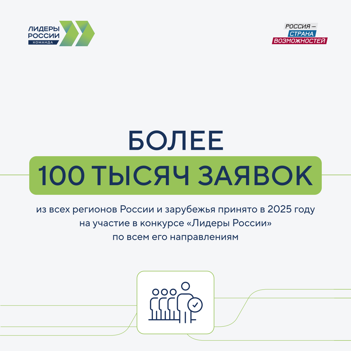 Заявочная кампания шестого сезона конкурса «Лидеры России» завершена. Генеральный директор Президентской платформы «Россия – страна возможностей», ректор Мастерской управления «Сенеж» Андрей Бетин отметил качественное развитие проекта и его ключевые нововведения: «В 2025 году конкурс «Лидеры России» еще больше расширил свои границы, в нем появились новые форматы и отдельные направления. Были запущены конкурсы «Лидеры агропромышленного комплекса», «Конкурс социальных архитекторов», прошел второй сезон конкурса «Лидеры России. Политика». А в конце года мы запустили долгожданный новый сезон «Лидеров России» в совершенно новом формате, его участниками стали не отдельные руководители, а управленческие команды крупных корпораций, бизнеса, государственных органов и других организаций. Как сказал Президент России Владимир Путин, конкурентным преимуществом человека сегодня становится умение работать в команде. Выпускники конкурса «Лидеры России» уже проявили себя и собрали десятки тысяч команд, а всего конкурс со специализациями объединил более 100 тысяч человек».